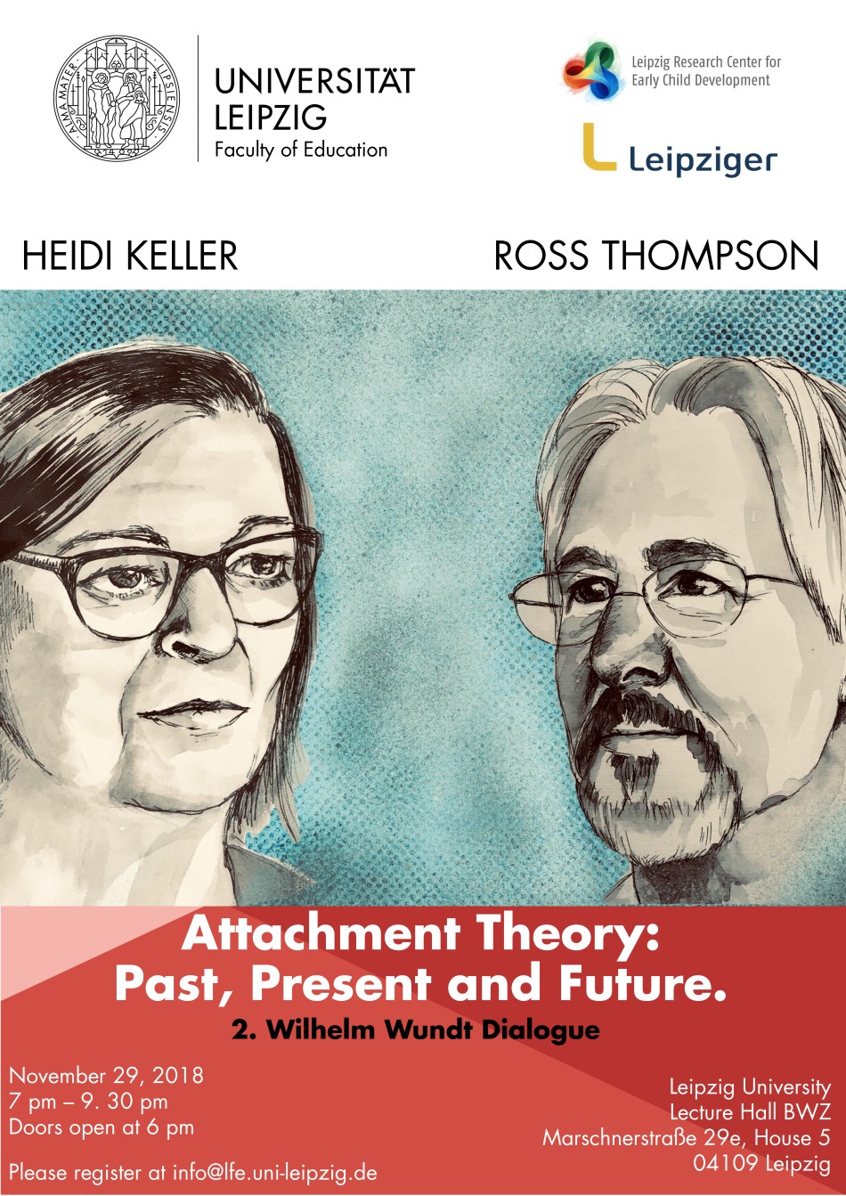 On November 29th 2018, Ross Thompson and Heidi Keller were invited to the 2. Wilhelm Wundt Dialog on the topic of “Attachment Theory: Past, Present and Future” at the University of Leipzig. First as speakers and then as discussants, they deliberated about the current state of the field and how it has evolved since its inception in the 1950s. Furthermore, Thompson and Keller reflected on some of the remaining questions and unresolved issues of attachment theory and research, and how the latter could be addressed in the years and decades to come.