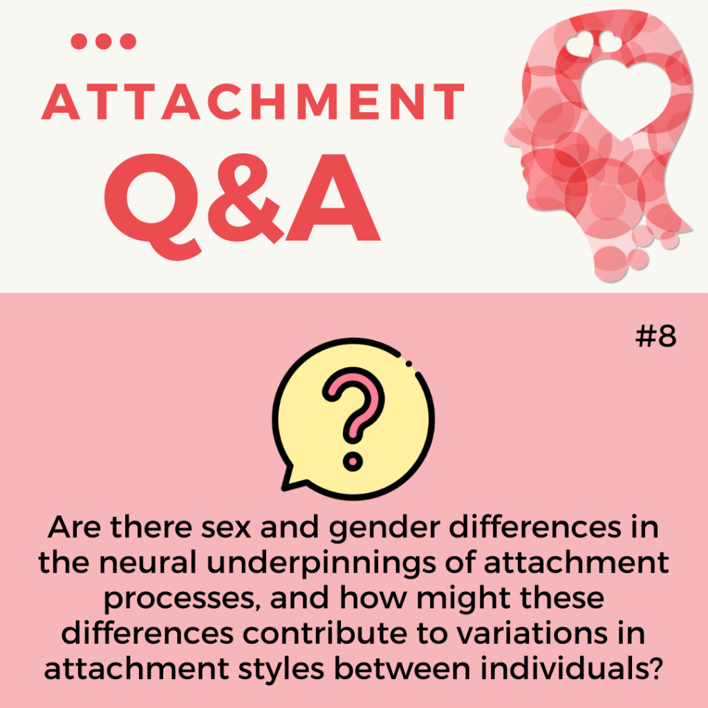 What is concerning possible sex differences in the neural underpinning of attachment, I do not feel that there is enough evidence to make any statements as of yet. Social neuroscience studies usually have a relatively small sample size, which often precludes testing sex differences in relation to attachment. Furthermore, even if sex differences are observed, meaningfully interpreting them is no trivial task. And I am not aware of any meta-analyses looking at reliable and replicable patterns across many studies.