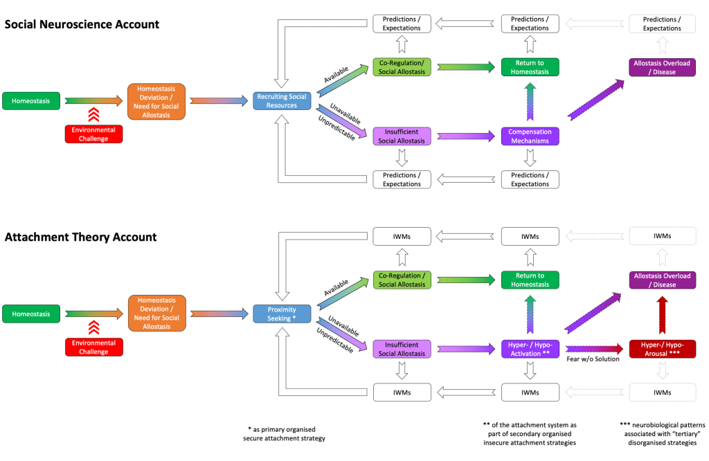 A short and accessible summary of the tight link between attachment, social (dis)connection and co-regulation through social allostasis is available in this series about “Is your brain securely attached? A social neuroscience perspective on attachment. So far, there are two posts available – Volume 2 published on 07 December 2022 and Volume 1 published on 19 May 2022.
