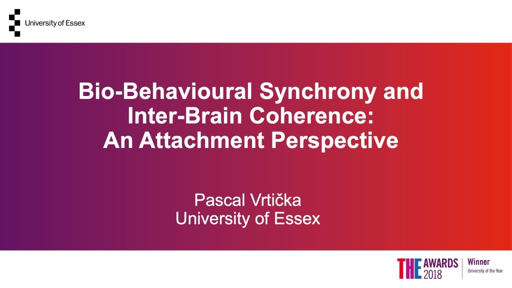 A short 30-minute presentation of SoNeAt Lab’s fNIRS hyperscanning research investigating bio-behavioural synchrony, interpersonal neural synchrony, and attachment (“Bio-behavioural synchrony and inter-brain coherence: an attachment perspective“) is available as a YouTube video (talk by Dr Pascal Vrticka on June 13, 2020 at the virtual conference Neurosync 2020).
