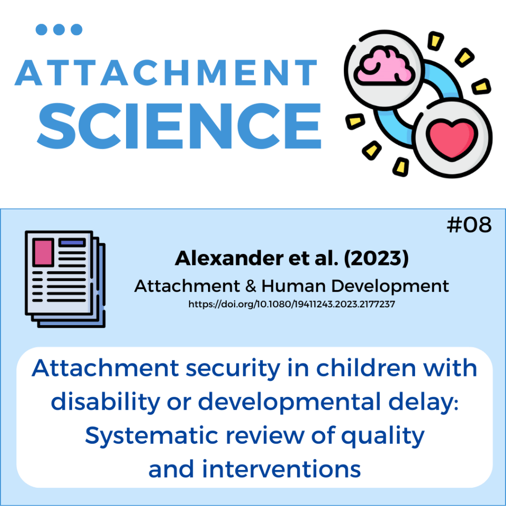 A recent systematic review explored evidence regarding the attachment security of children with Disability or Developmental Delay (DD), the nature of interventions that have been employed to improve secure child-parent attachment in this population, and the findings’ implications for early childhood intervention (ECI) professionals.