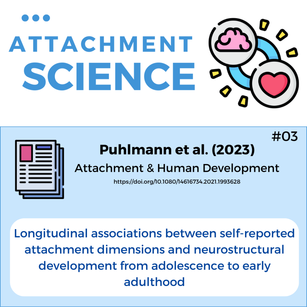 In a sample of 95 typically developing adolescents (12–19 years old at study baseline), the authors used structural magnetic resonance imaging (sMRI) for up to four times during up to four years. Teenagers’ attachment was assessed with a self-report questionnaire (Relationship Scales Questionnaire – RSQ – with two dimensions: avoidance and anxiety) at study baseline and then related to changes in cortical thickness (CT) over time.
