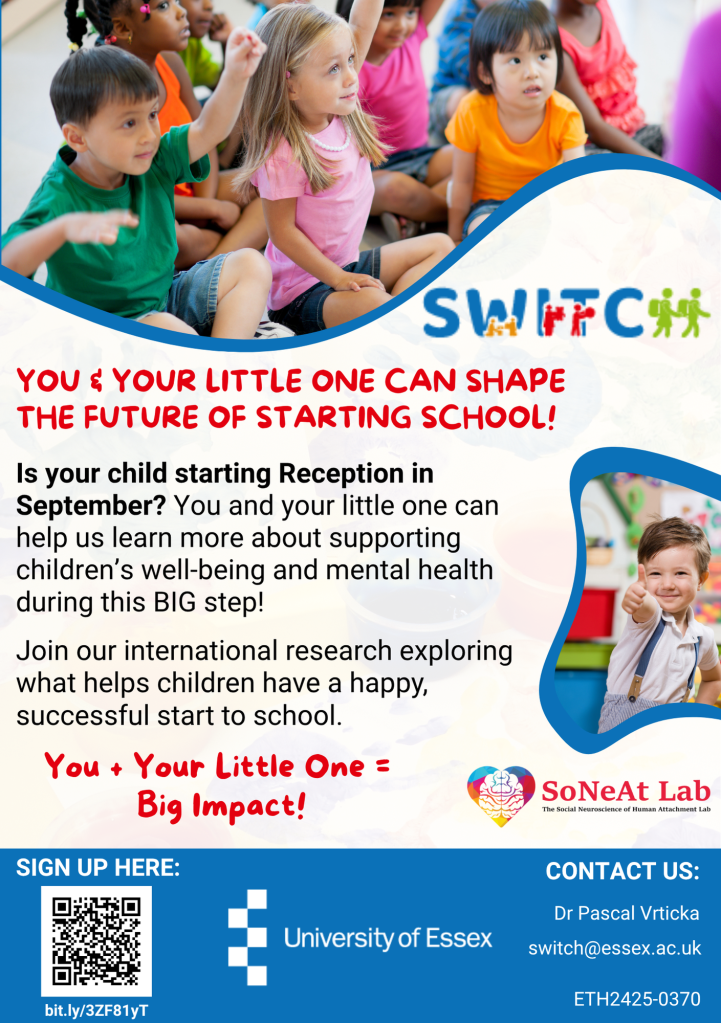 We are now looking for participating families. More information can be found in the flyer below. Please do not hesitate to contact us in case of any questions: switch@essex.ac.uk.